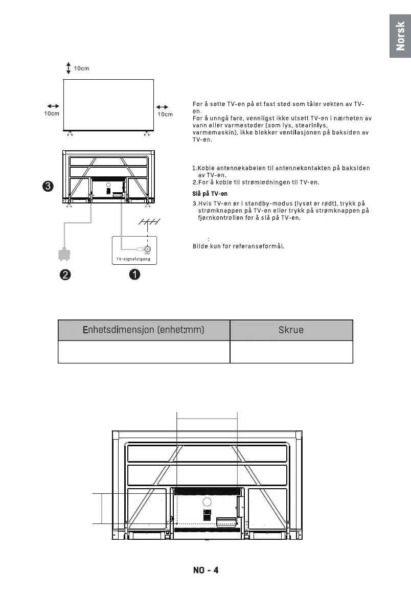 OBS: Lengden på den angitte skruen er bare en anbefaling; faktisk lengde som kreves kan variere