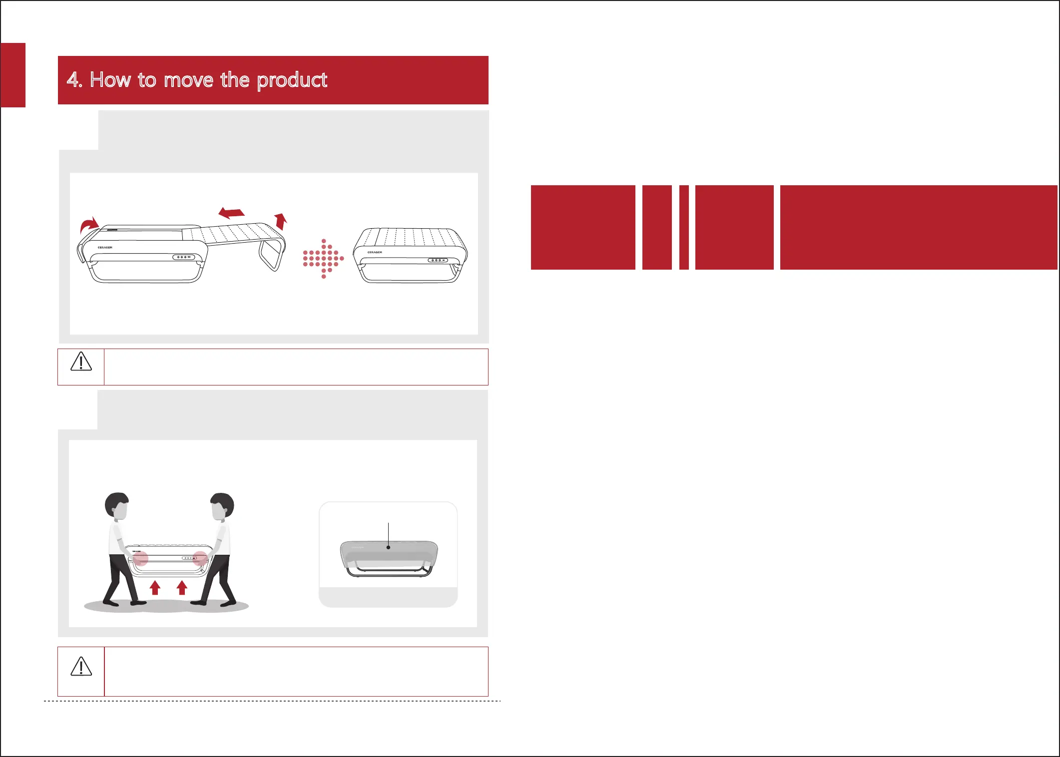 - Be sure to prevent the supporting mat from opening while moving the product.