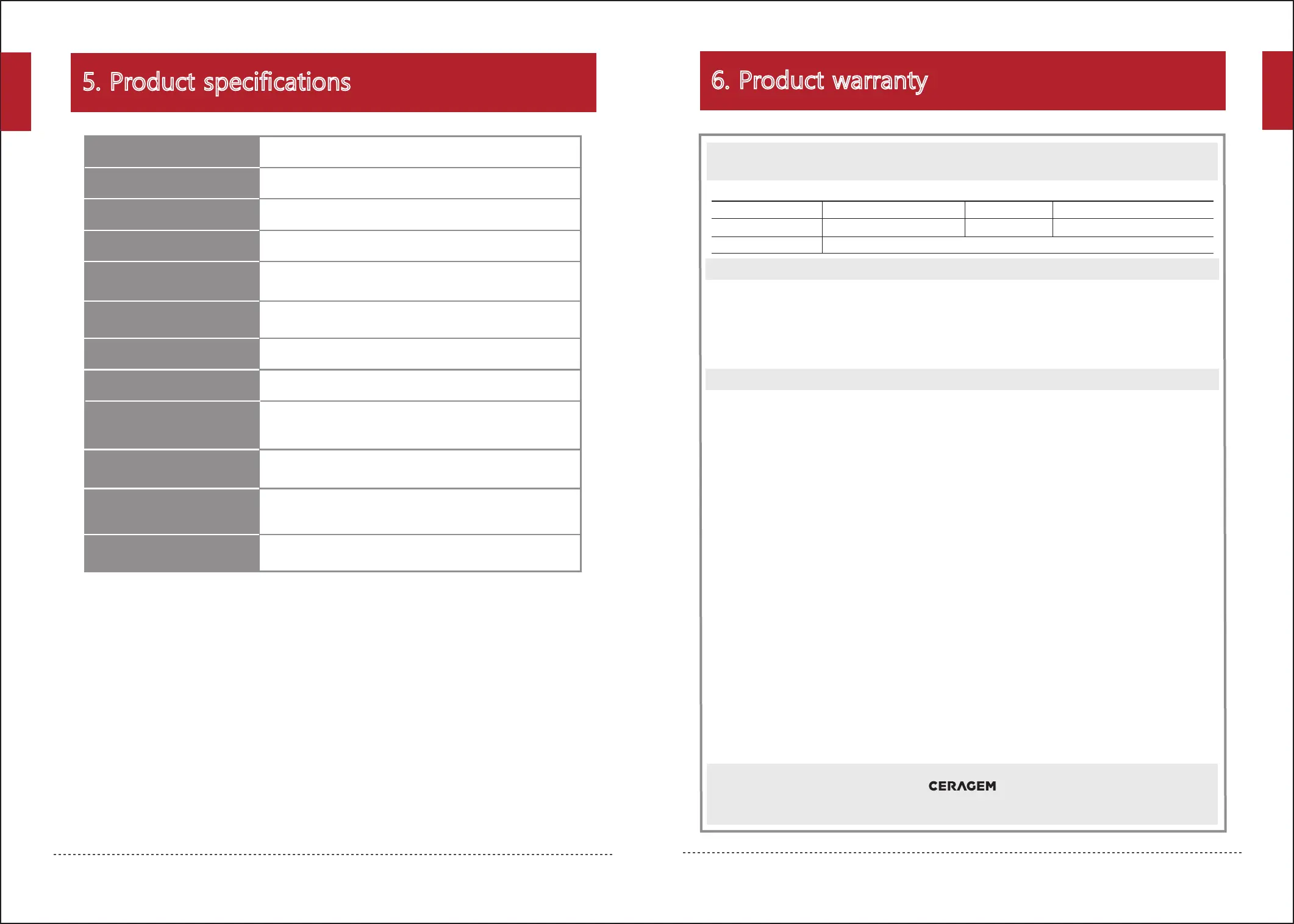 - Product failure due to the use of consumables or products not specied by Ceragem;