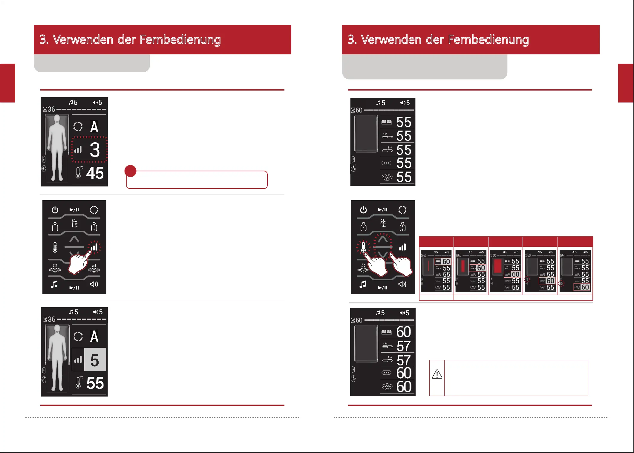 - Wenn die Funktion Wärmeliege verwendet wird, kann die Temperatur des