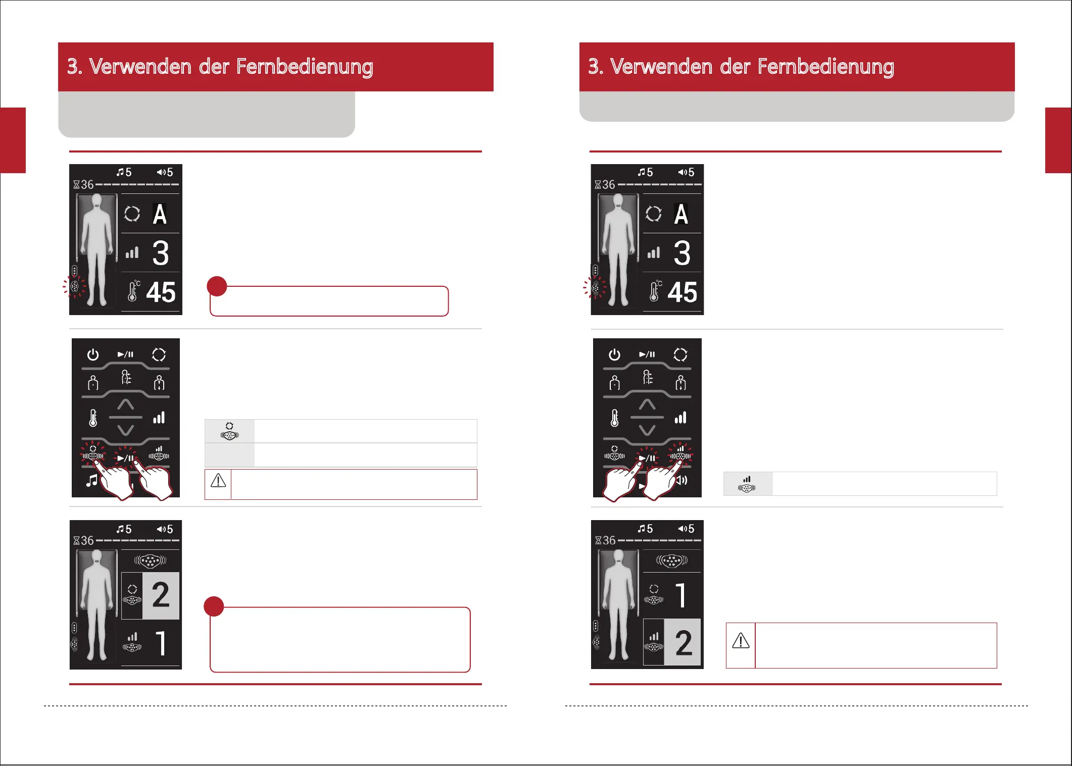 - Die Intensität kann in den Stufen 1~2 eingestellt werden.