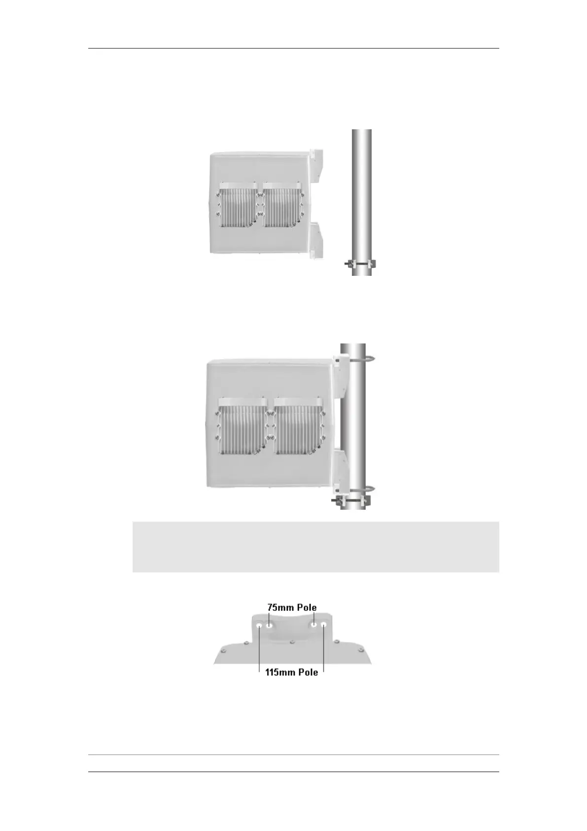 Note: For a pole of 75 mm diameter, use the 75 mm U-shaped