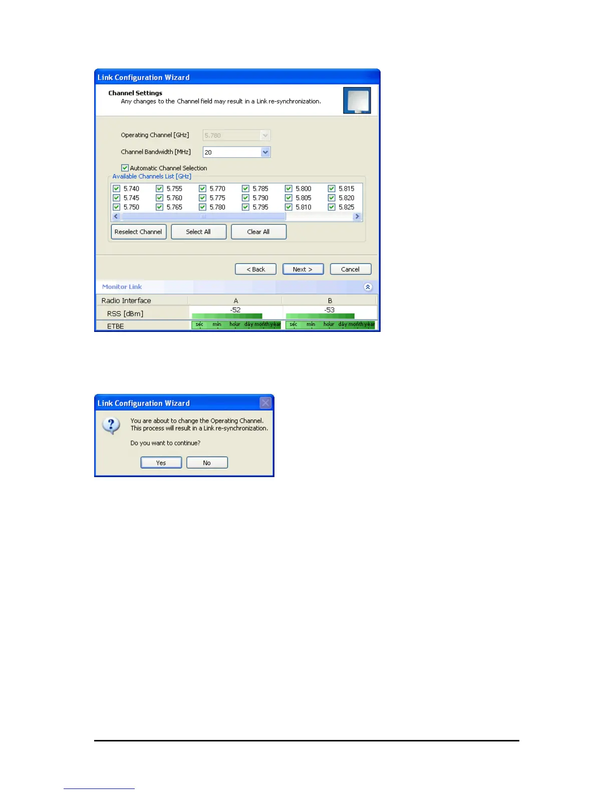Notice that the operating channel is grayed out. If you use the Reselect Channel button, to