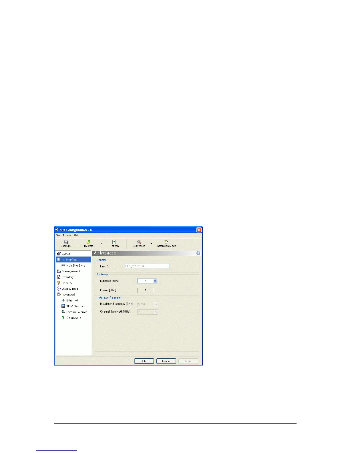 Click the Air Interface item in the left hand list. A window similar to the following appears:
