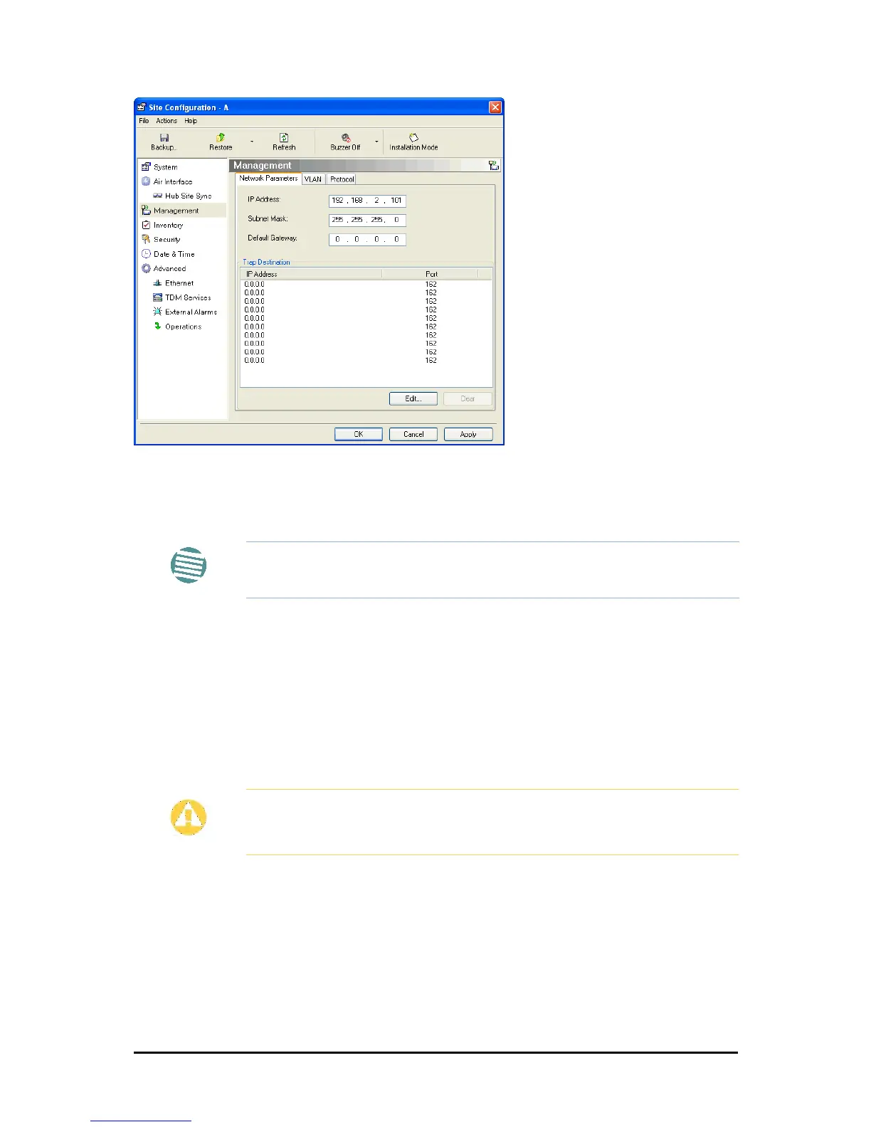 Figure 8-4: Management Addresses - Site Configuration dialog box