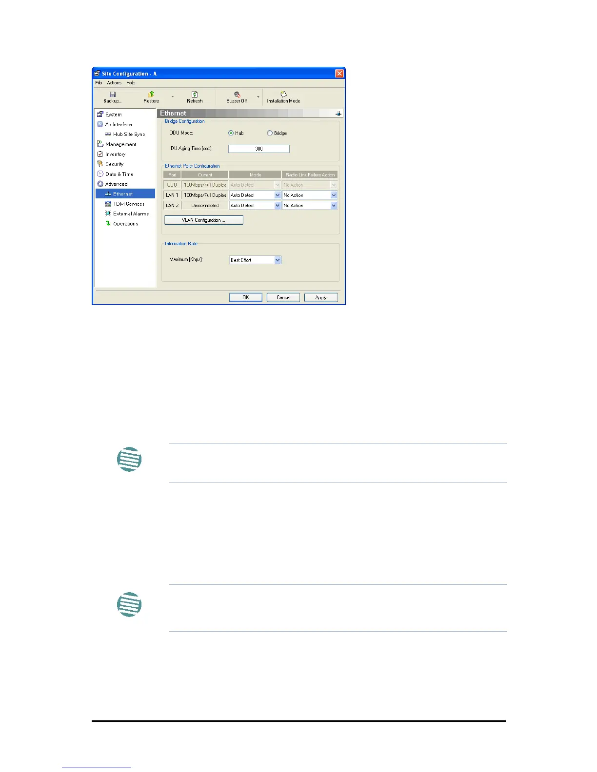 • Hub Mode - in Hub mode the ODU transparently forwards all packets over the wireless