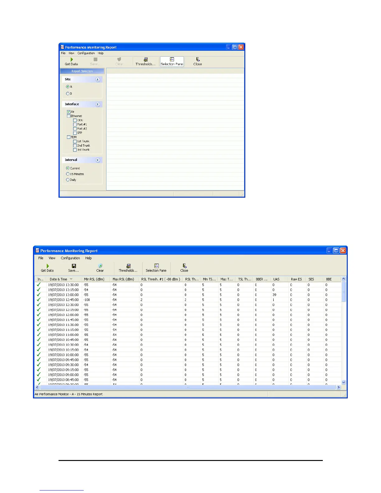 Figure 9-13: A typical Performance Monitoring Report based on 15 minute intervals