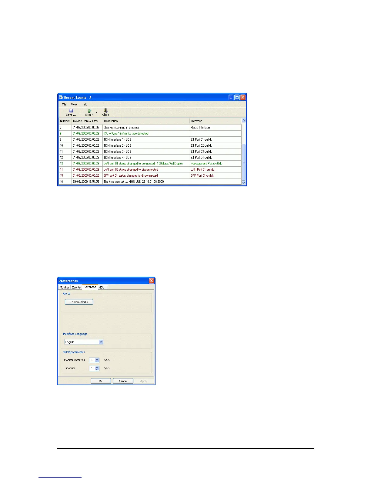 Figure 9-19: Recent Events - Up to last 256 events at Site A