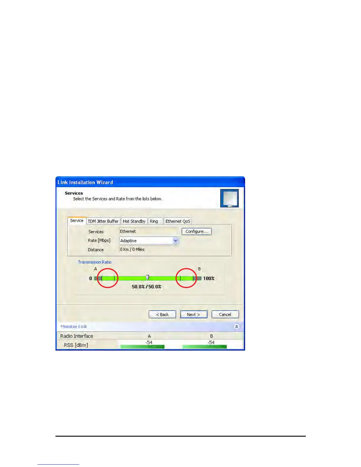 and FibeAir 2000 clients, the Services and Rates dialog will look like this: