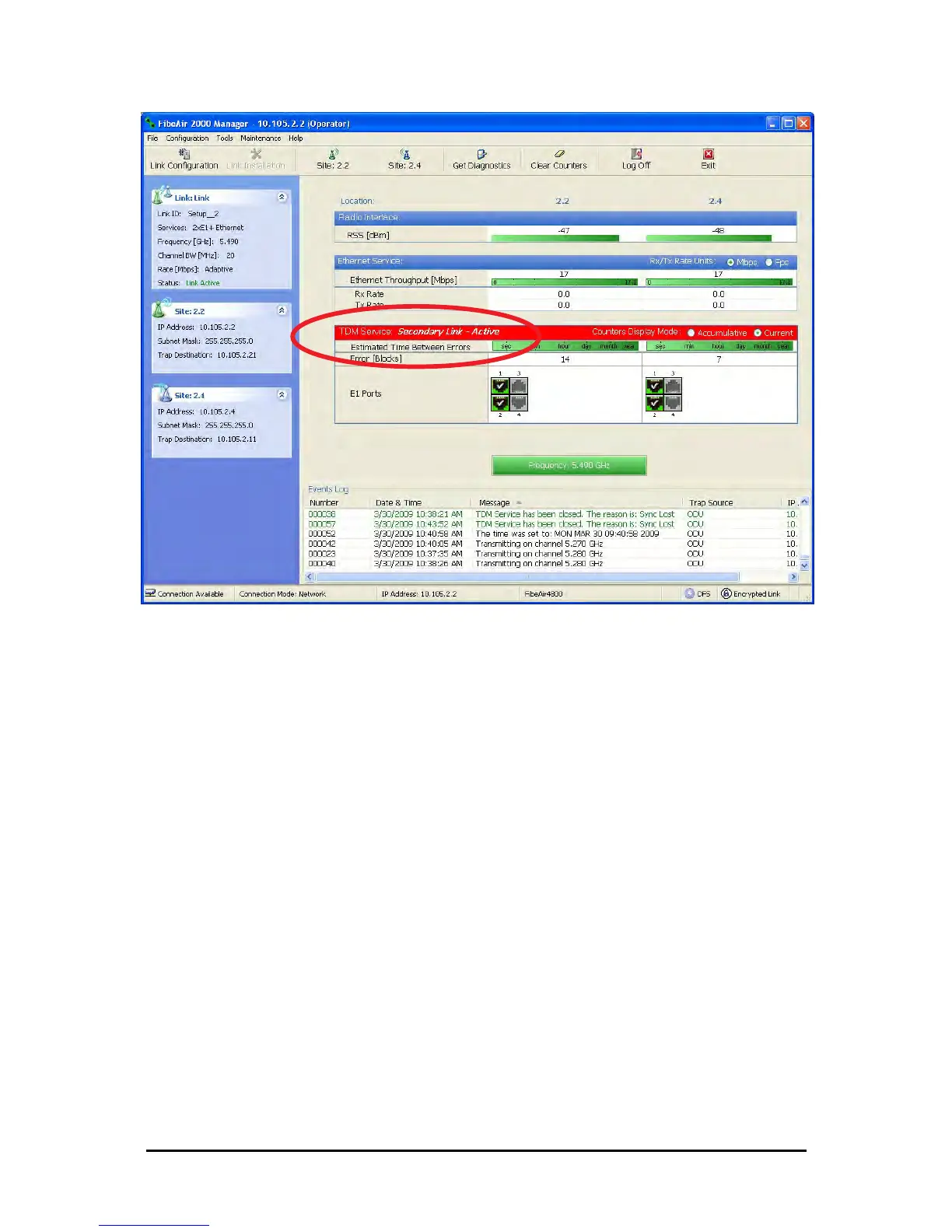 Figure 12-8: Secondary Link operating as the Hot Standby link