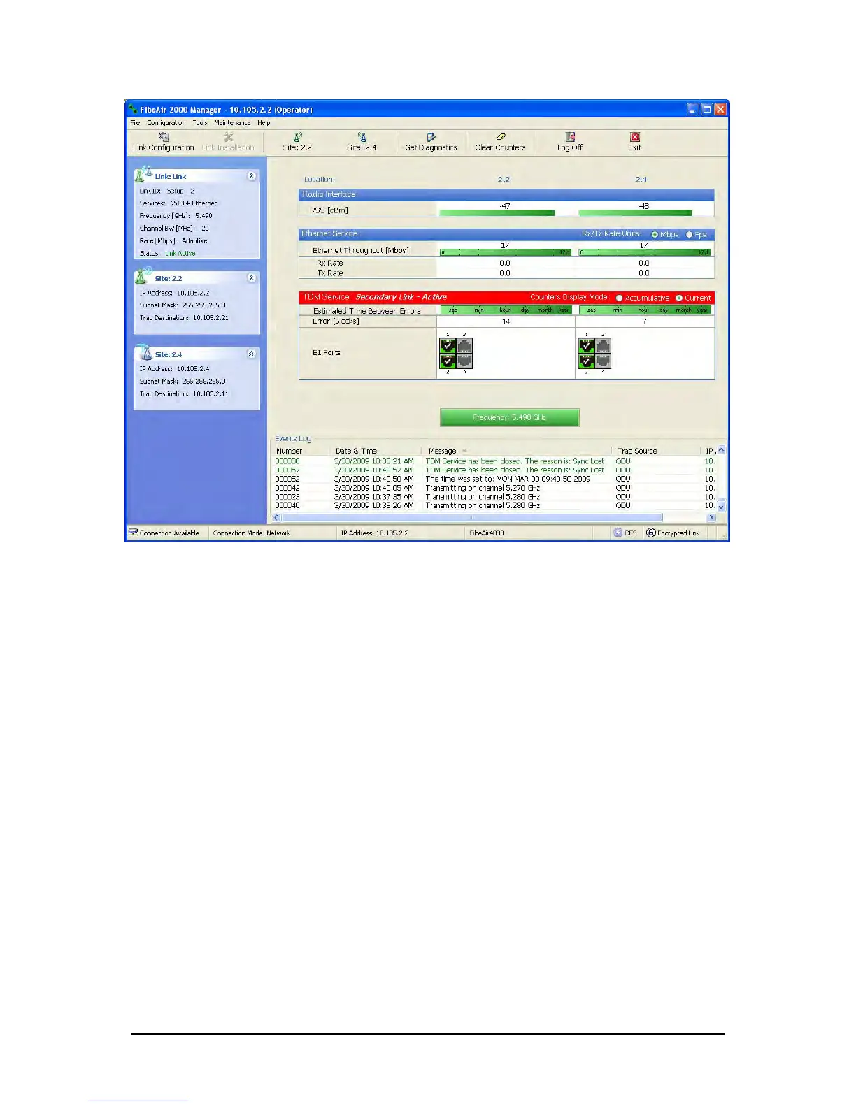 reversion from the secondary link to the primary link, the Manager main windows should look