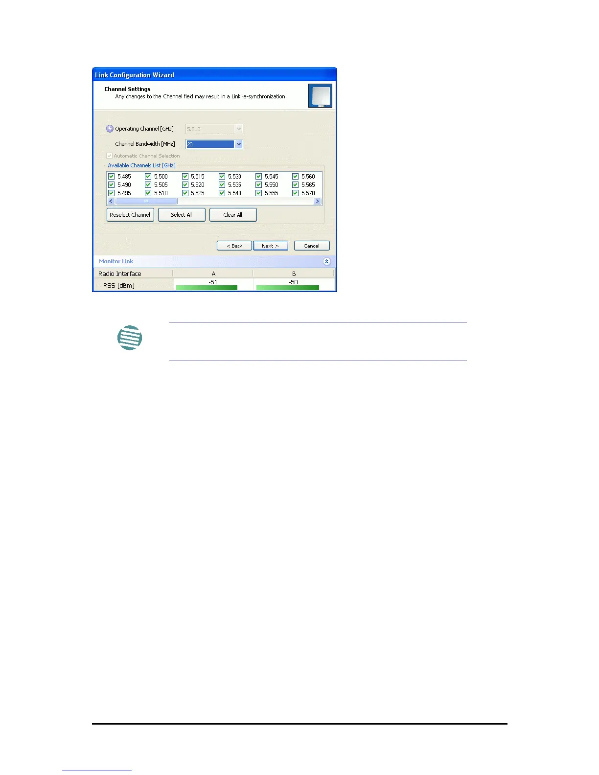 Figure 16-5: Channel Select dialog box - ACS permanently enabled