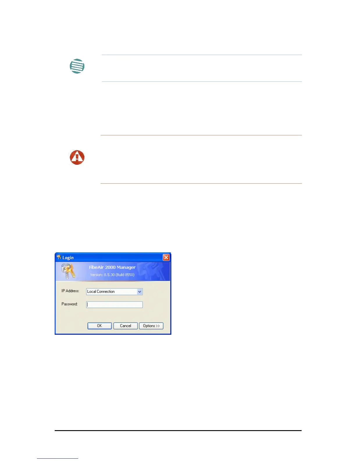 7. Enter the default password, admin. After a few moments, the FibeAir2000 Manager