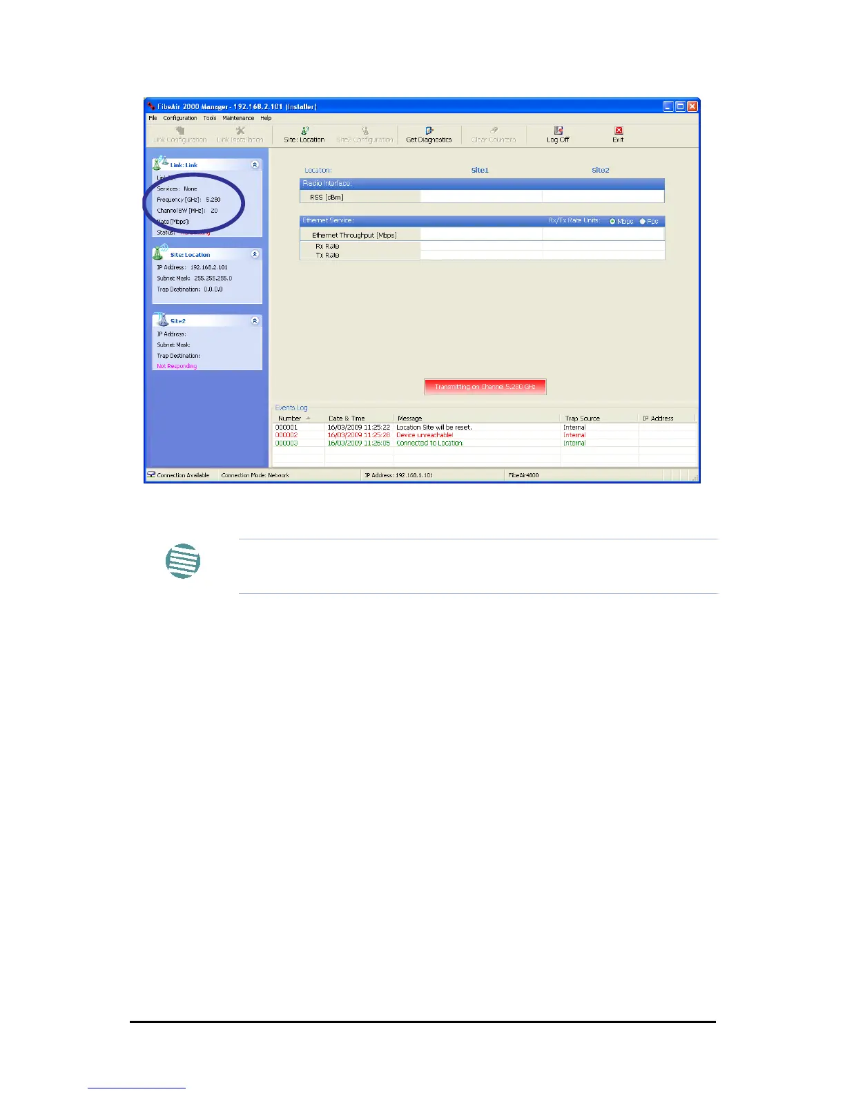 Figure 20-6: Main Window after band change - new band circled