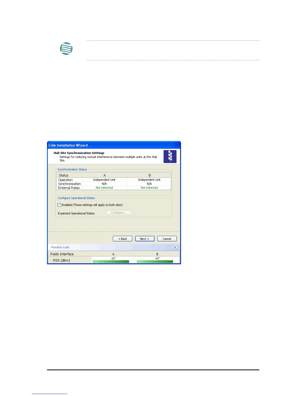 The Synchronization Status dialog box displays the current status of each side of the link. See
