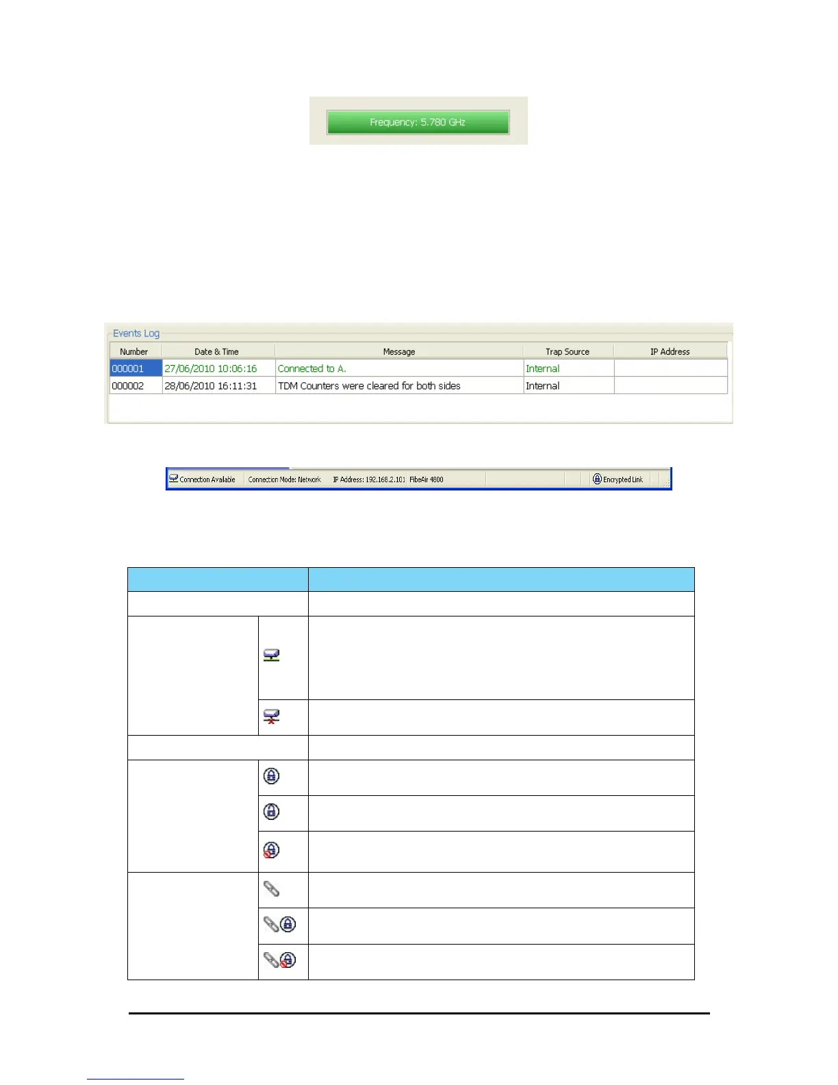 Connectivity Shows if FibeAir2000 Manager is communicating with the ODU.
