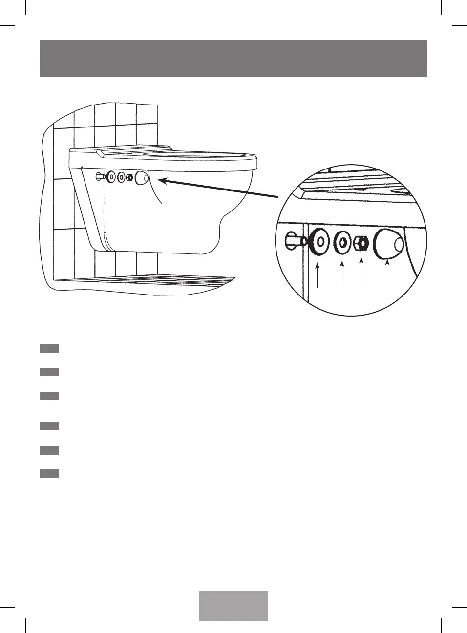 Ist die Schüssel ordnungsgemäß positioniert, ist sie mit dem Teileset zu befestigen, indem folgende Reihenfolge
