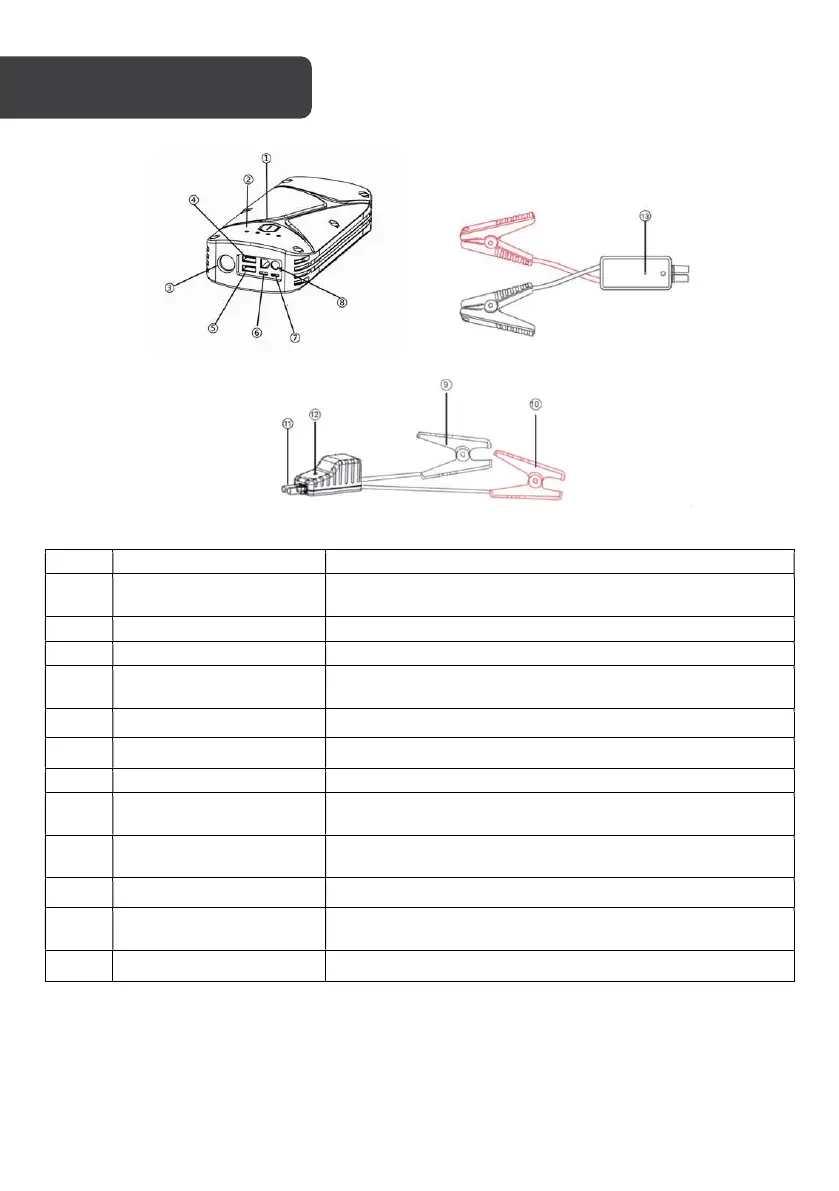 7 Micro USB Input Port Charge the jump starter via the Micro USB cable.