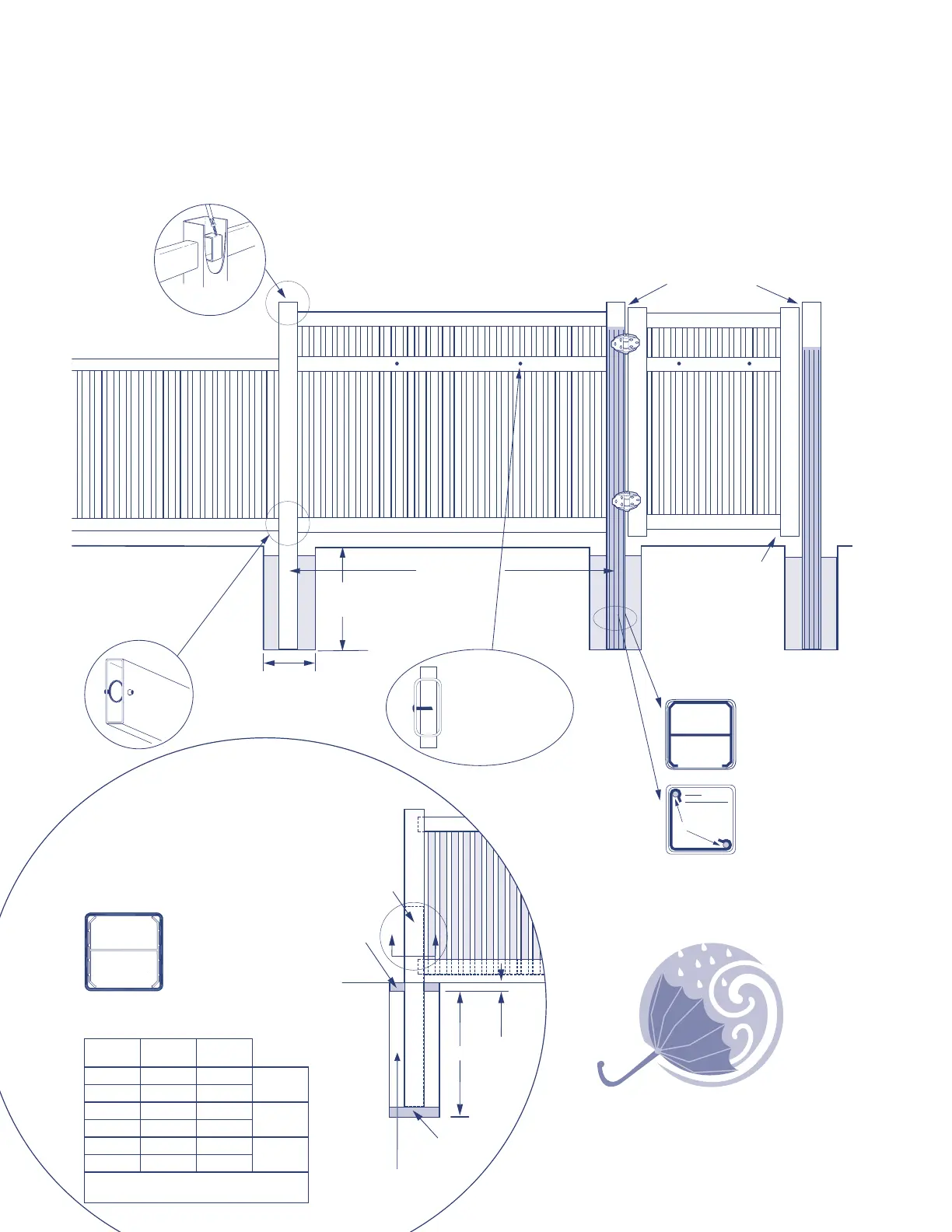 LATCH AND END POSTS. POSITION REBAR