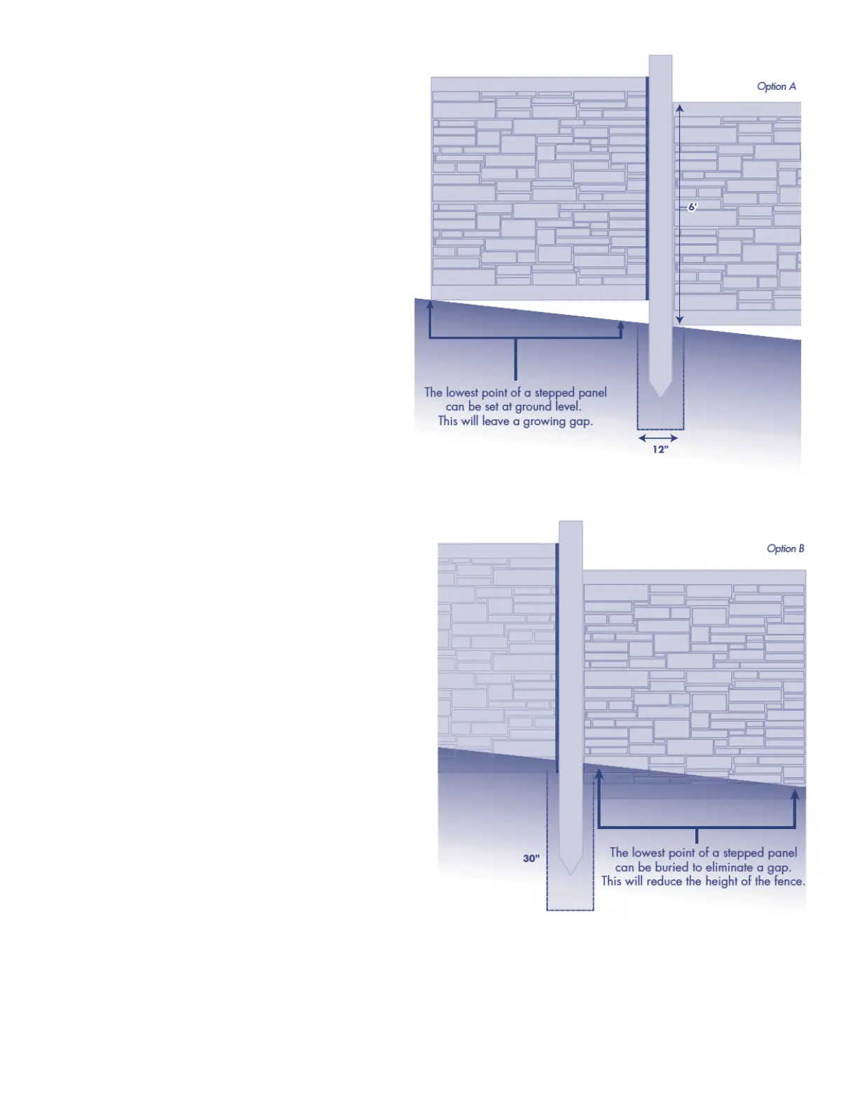 NOTE: A 6' wide panel can be stepped as much as 12" per