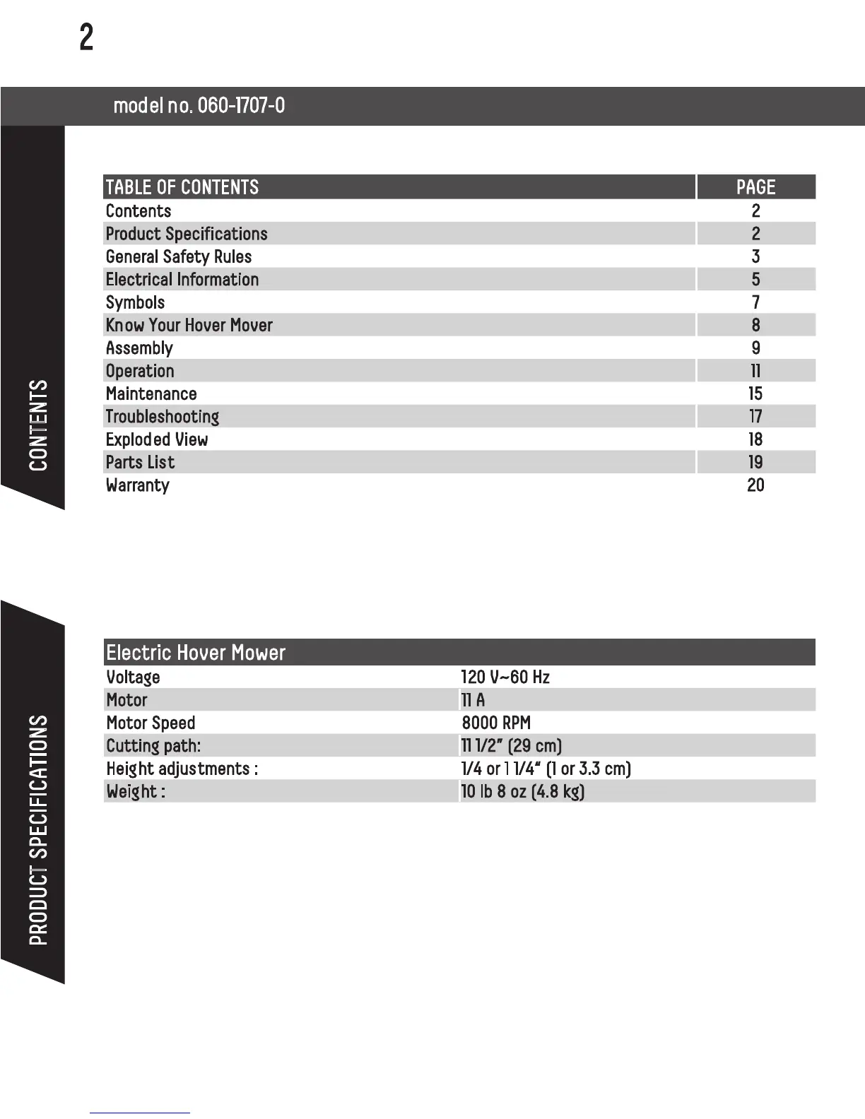 model no. 060-1707-0