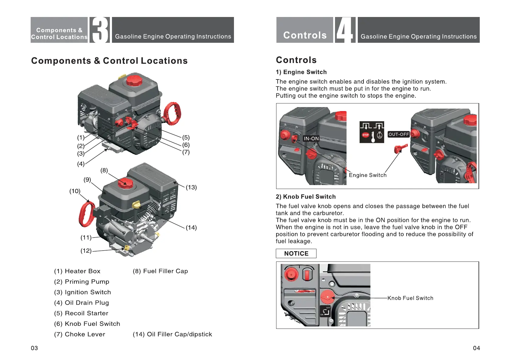 CERTIFIED 212cc - Components and Control Locations; Engine Component Identification; Engine Controls; Engine Switch Operation