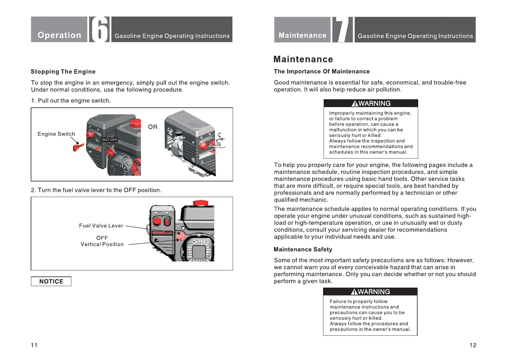 CERTIFIED 212cc - Stopping the Engine; Maintenance Overview; Importance of Regular Maintenance; Maintenance Safety Guidelines