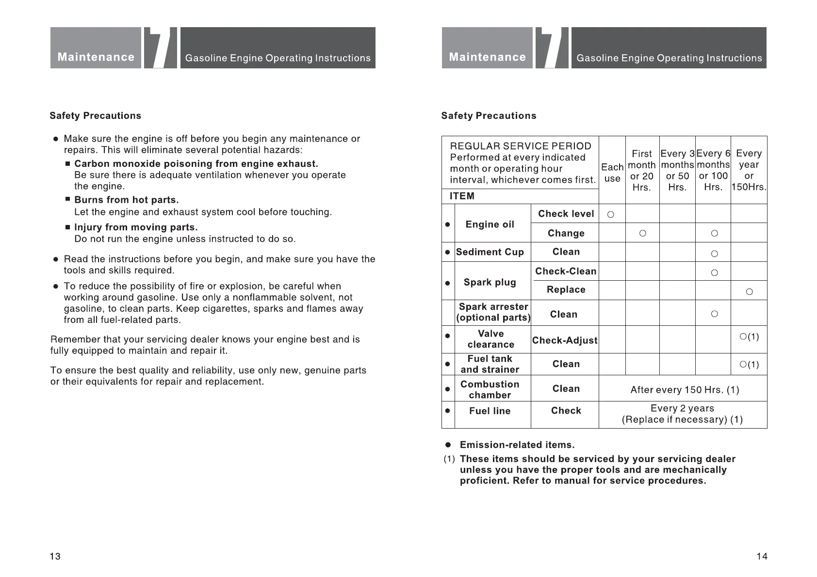 CERTIFIED 212cc - Maintenance Safety Precautions