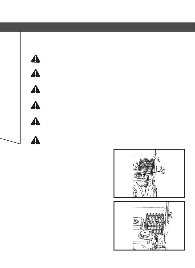 WARNING! Refuel in a well-ventilated area with the engine stopped. Do not smoke or