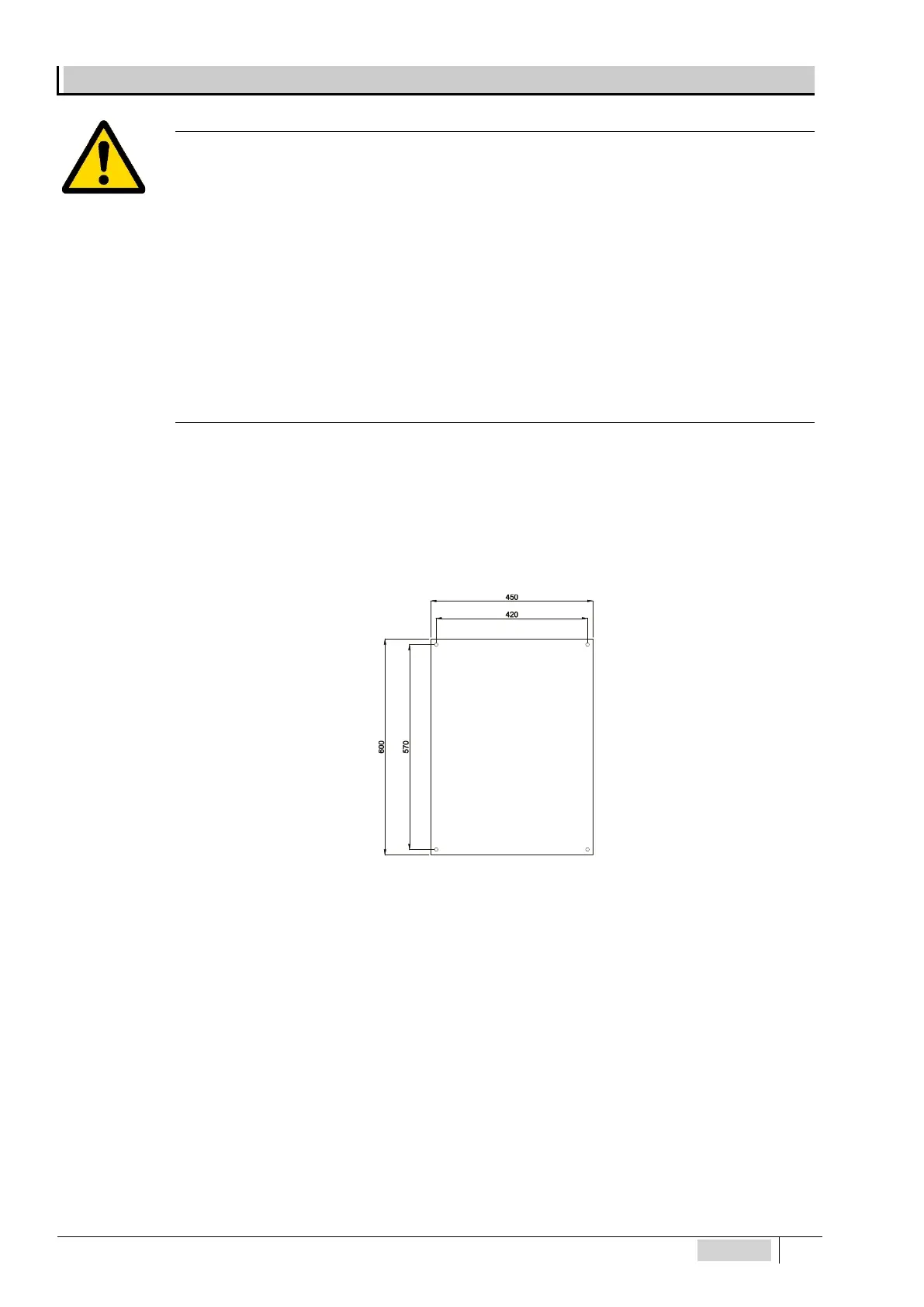 Figura 4 - Posición de los orificios de montaje en pared de la placa 450 x 600 mm