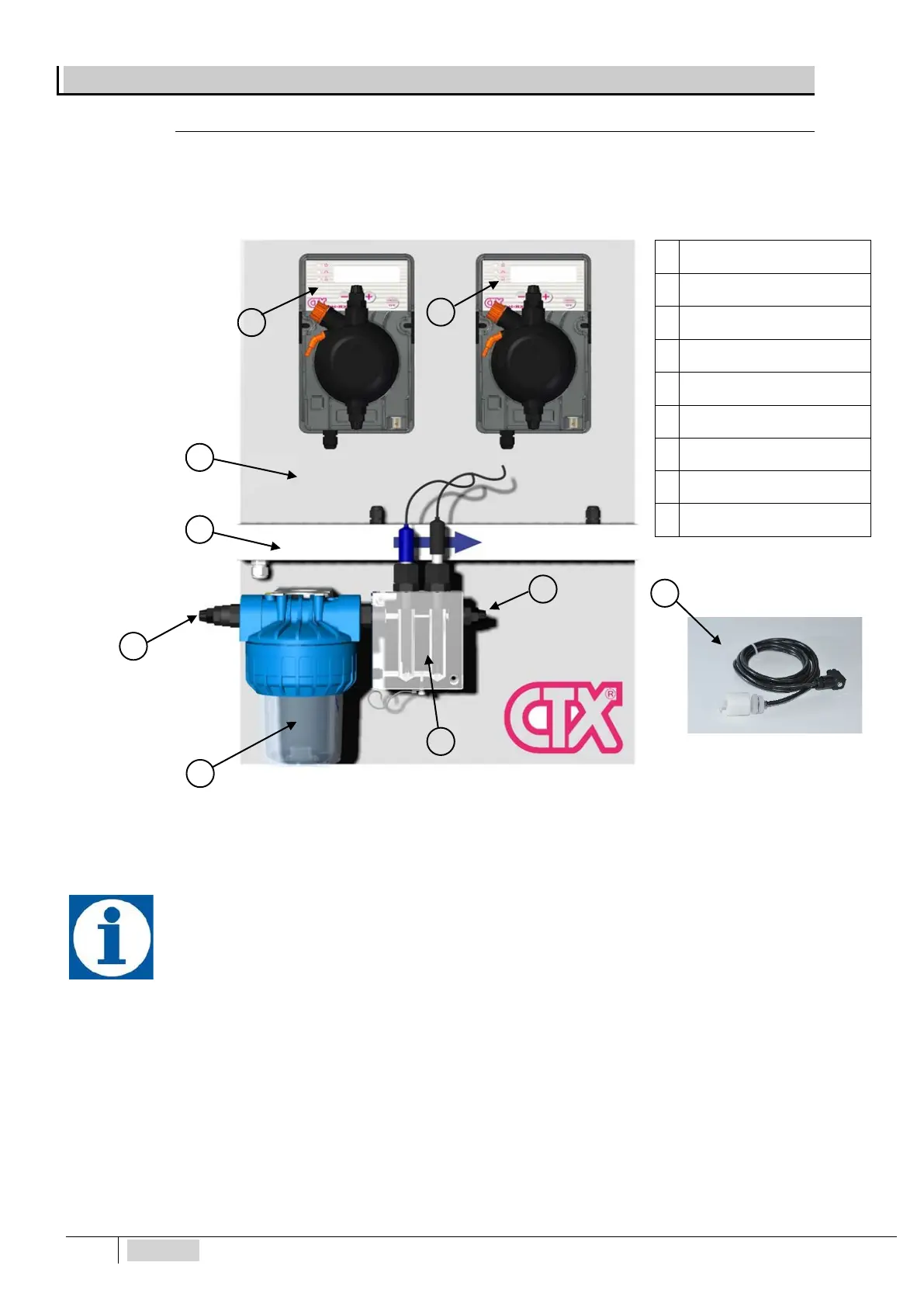 (pompe strumento elettroniche) e una parte idraulica (valvole di flusso, filtri, ecc.). Le 2 pompe dosatrici attuano il
