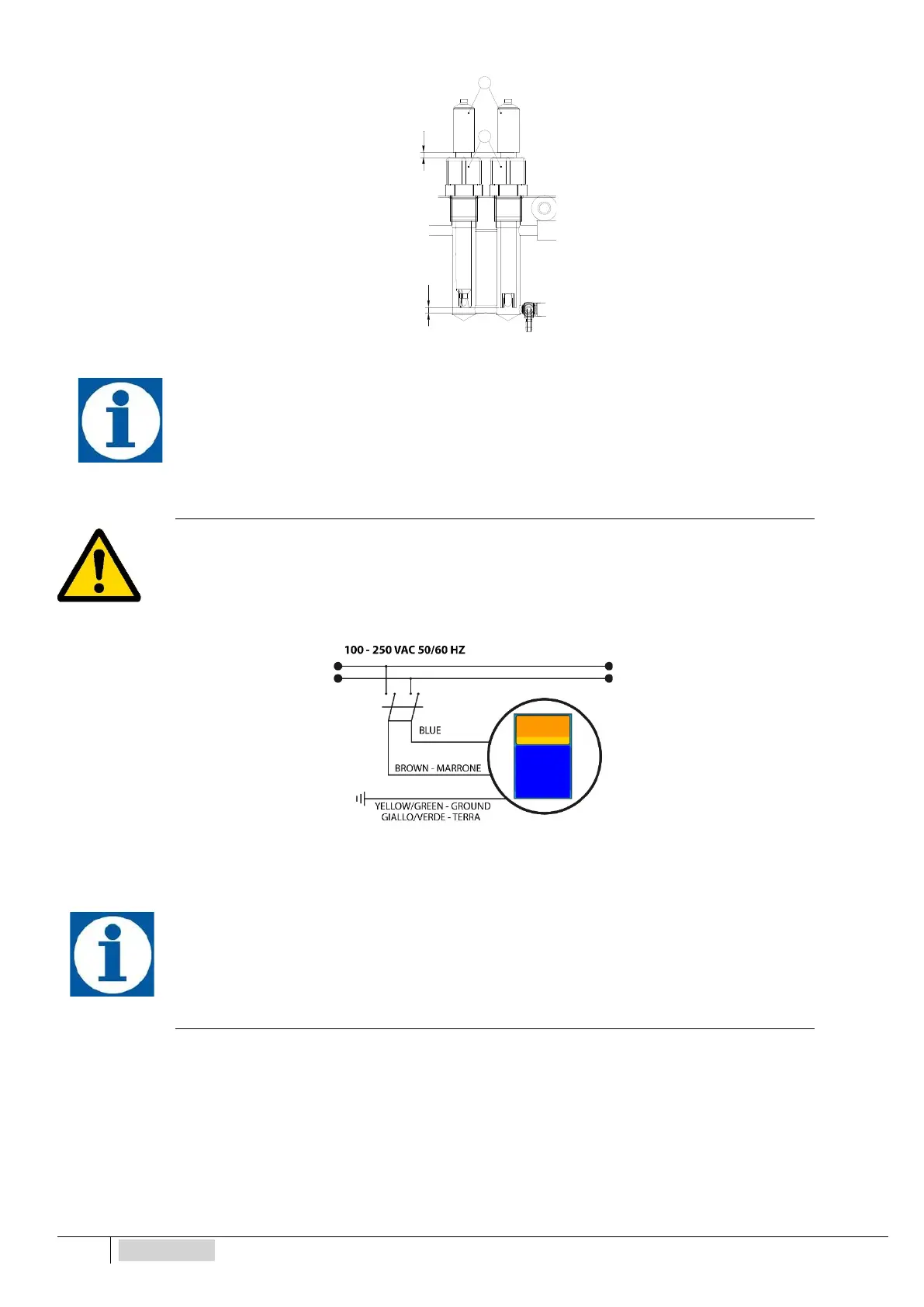 Se os cabos de alimentação não forem dotados de ficha, a aparelhagem deve ser ligada à rede elétrica através