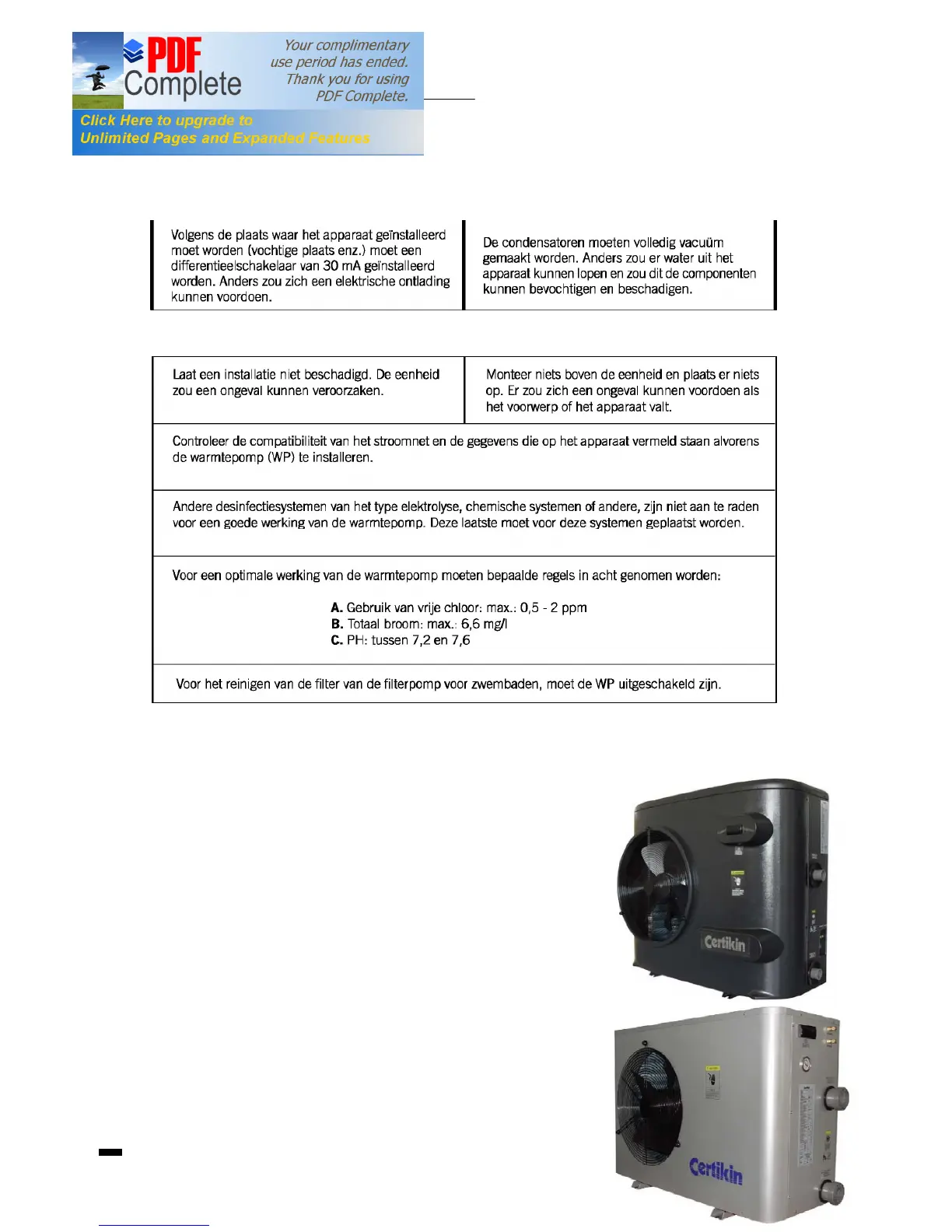 pecialiseerde, ervaren onderneming. De gebruiker mag de warmtepomp niet zelf installeren of repareren en mag dit ook niet