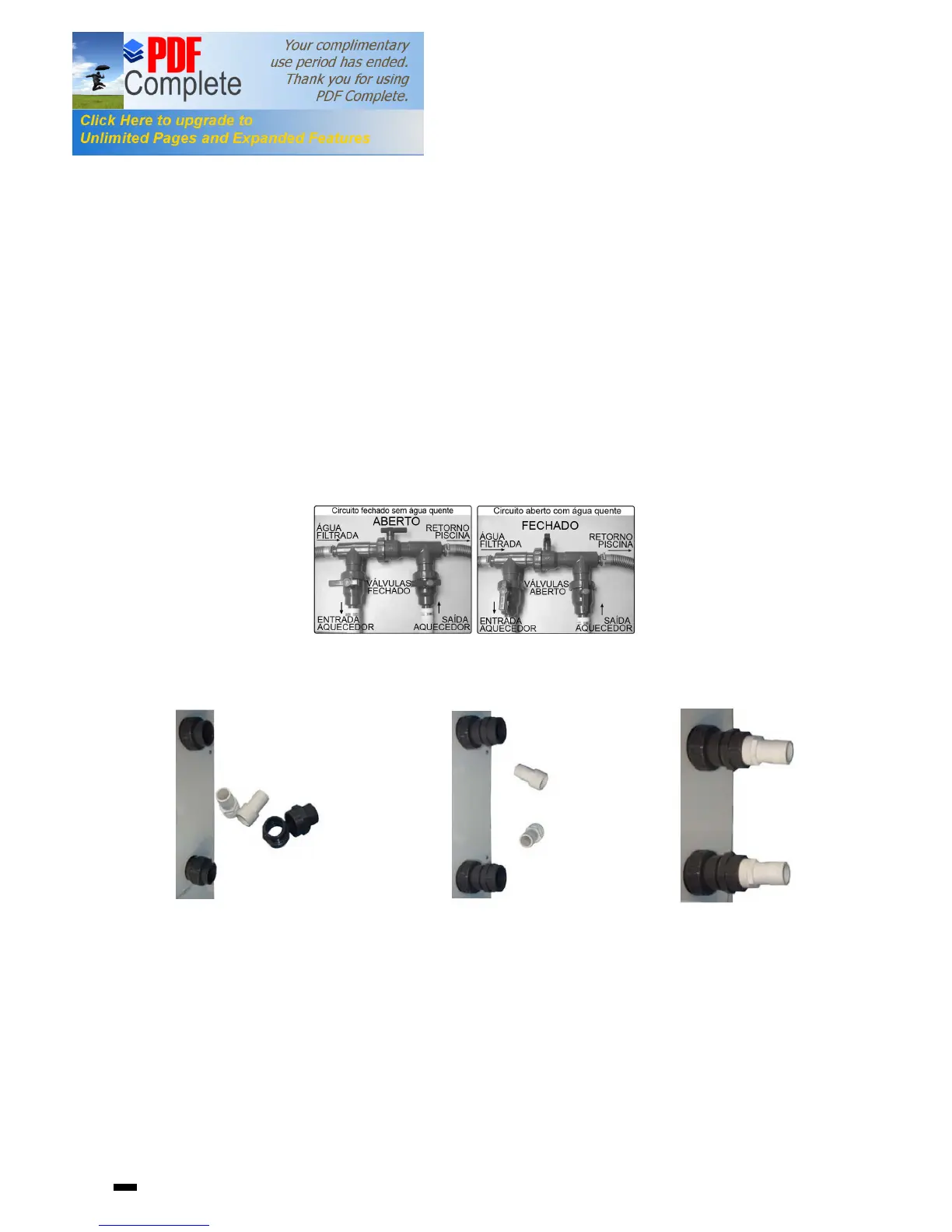 NPT 1 1/2”-38. Nas instalações onde a tubagem for de D-50, bastará instalar as ligações de três peças (foto 1). Nas instalações