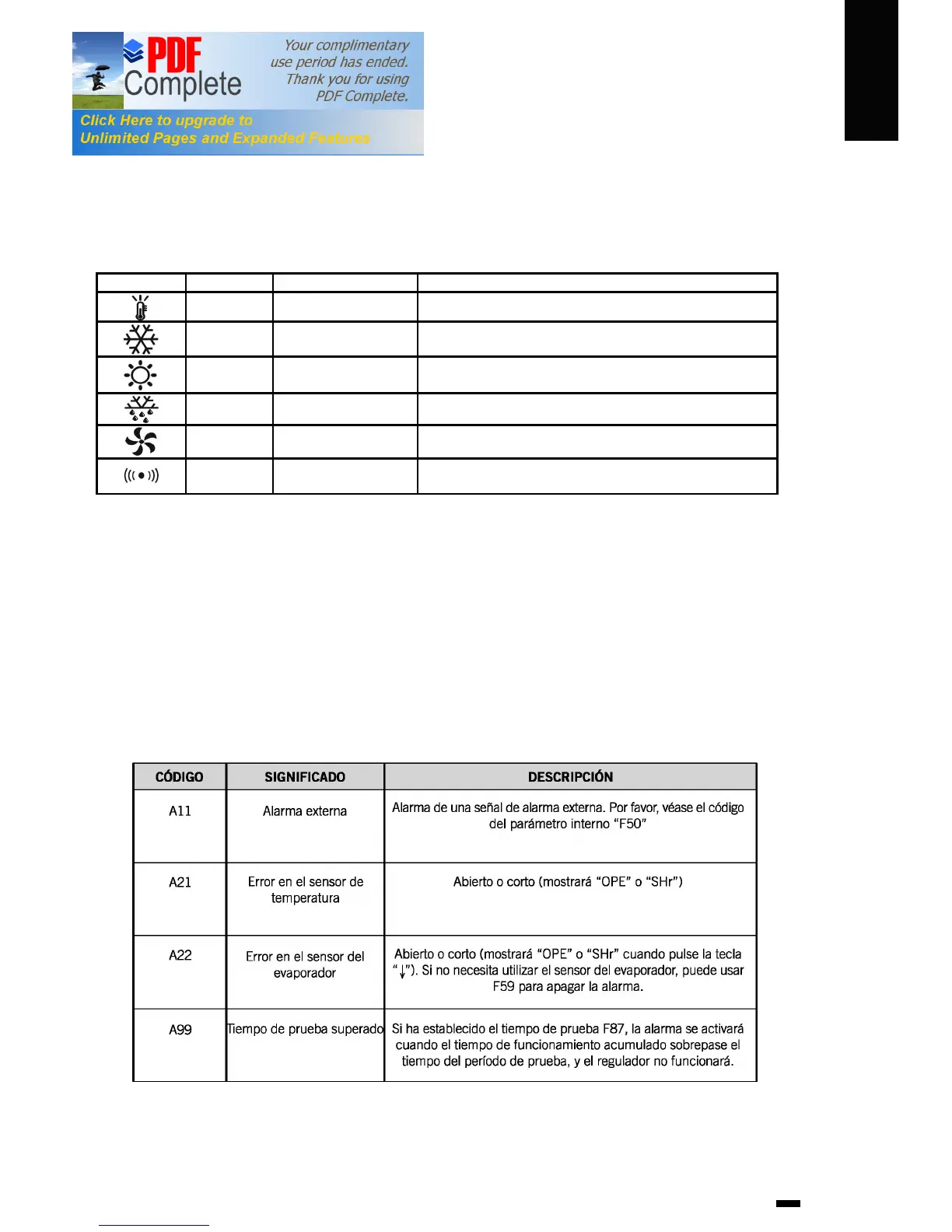 mientras que OPE quiere decir que el sensor de temperatura esabierto. En modo de alarma aparecerán de forma alternativa