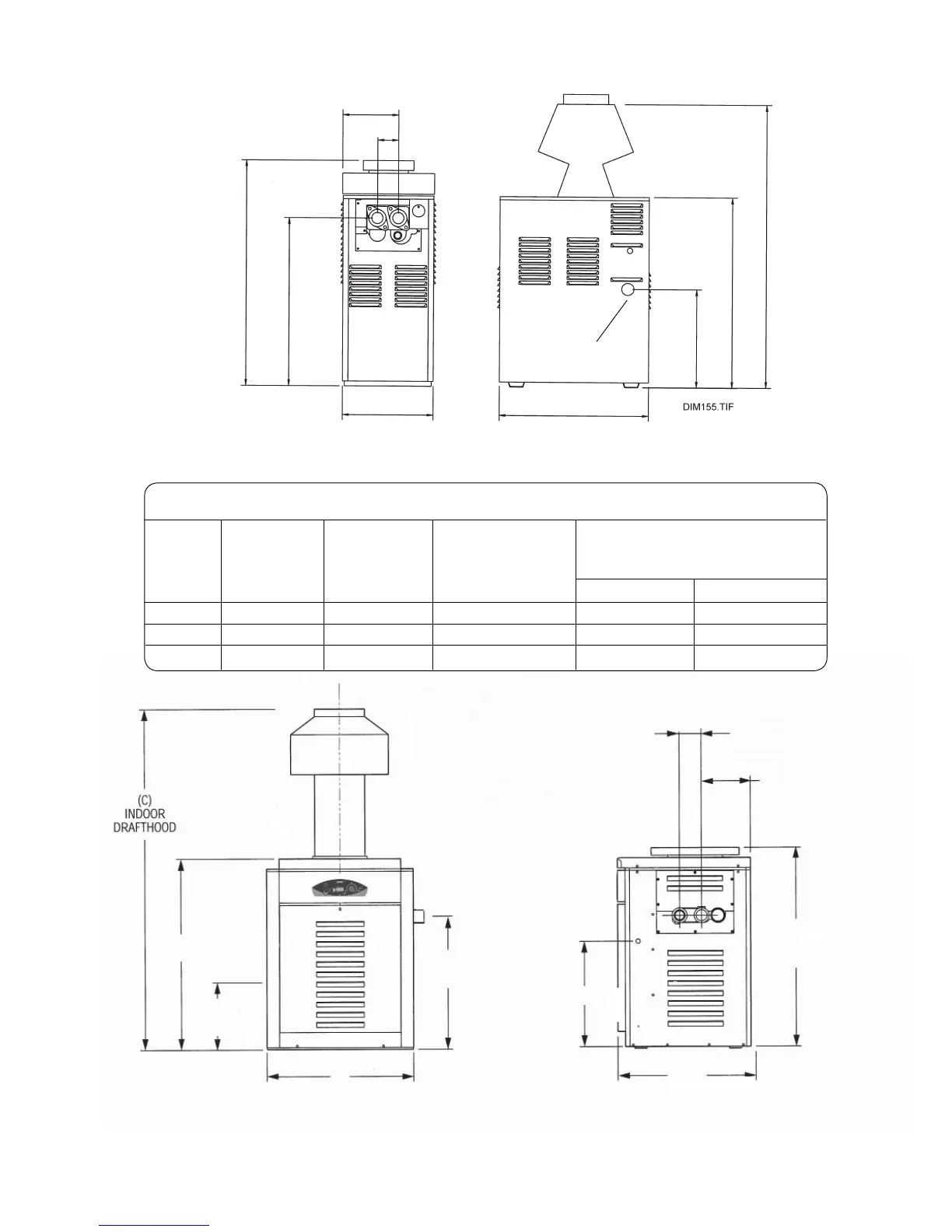 MODEL WIDTH FLUE DIA CONNECTIONS SHIPPING WEIGHT