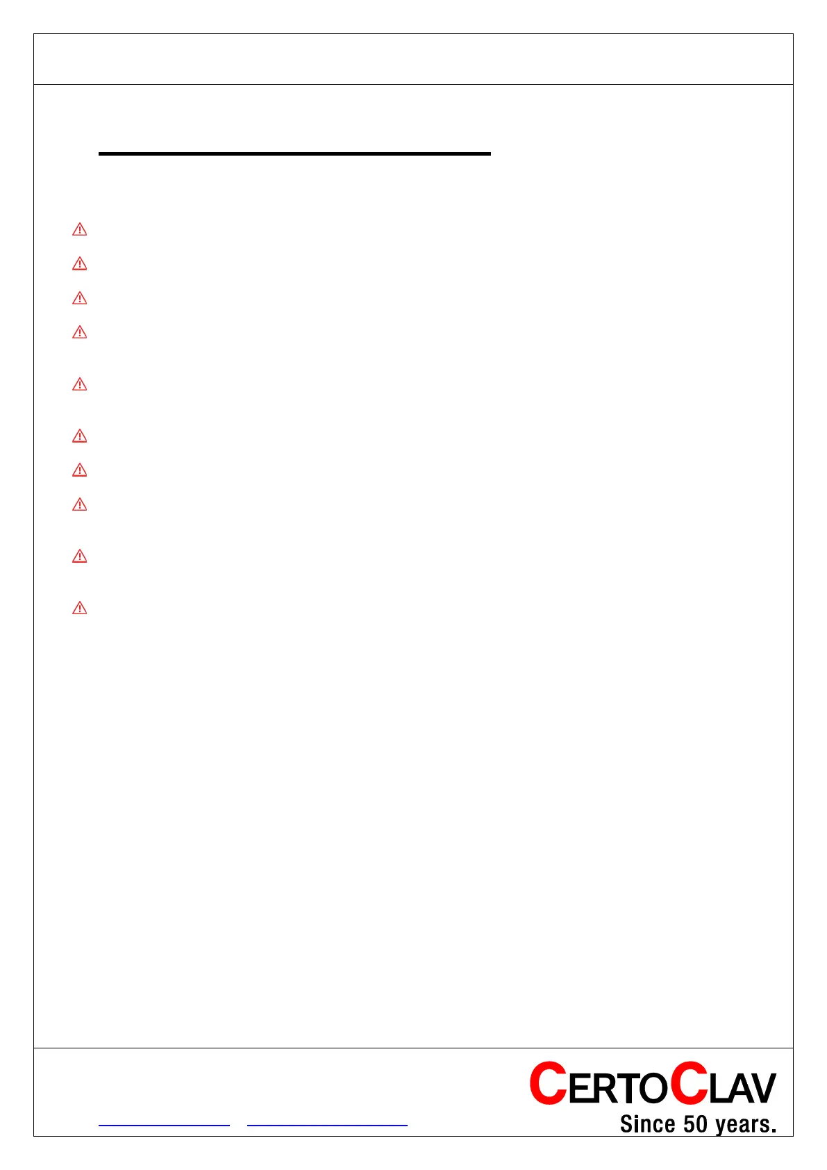 This autoclave must only be maintained by CertoClav or authorized retailers. Always use