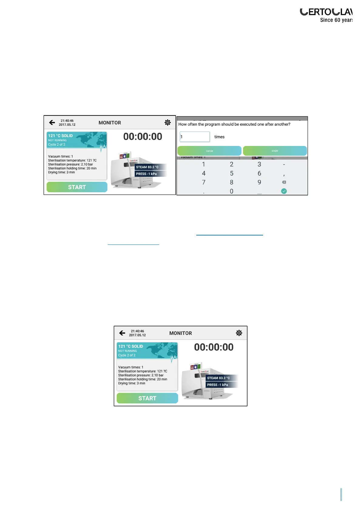 If Material Test Mode has been activated, the autoclave asks how often the program
