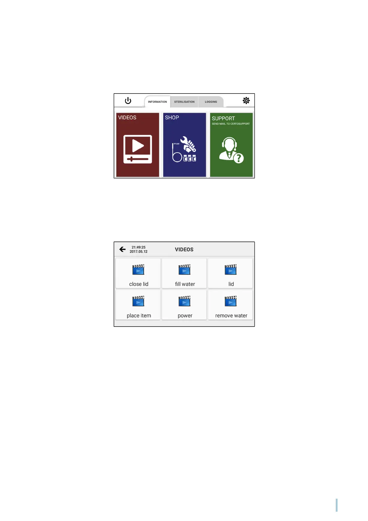 training videos, contact the CertoSupport directly from the touchscreen or order spare