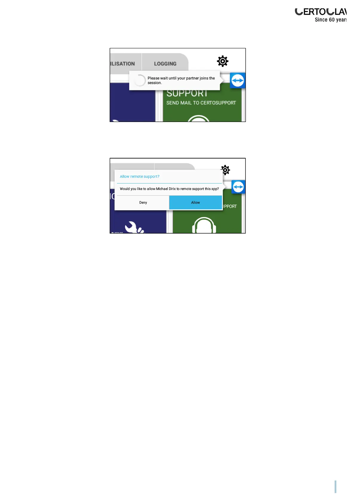 As soon as CertoSupport has joined the session, we will ask your permission to split