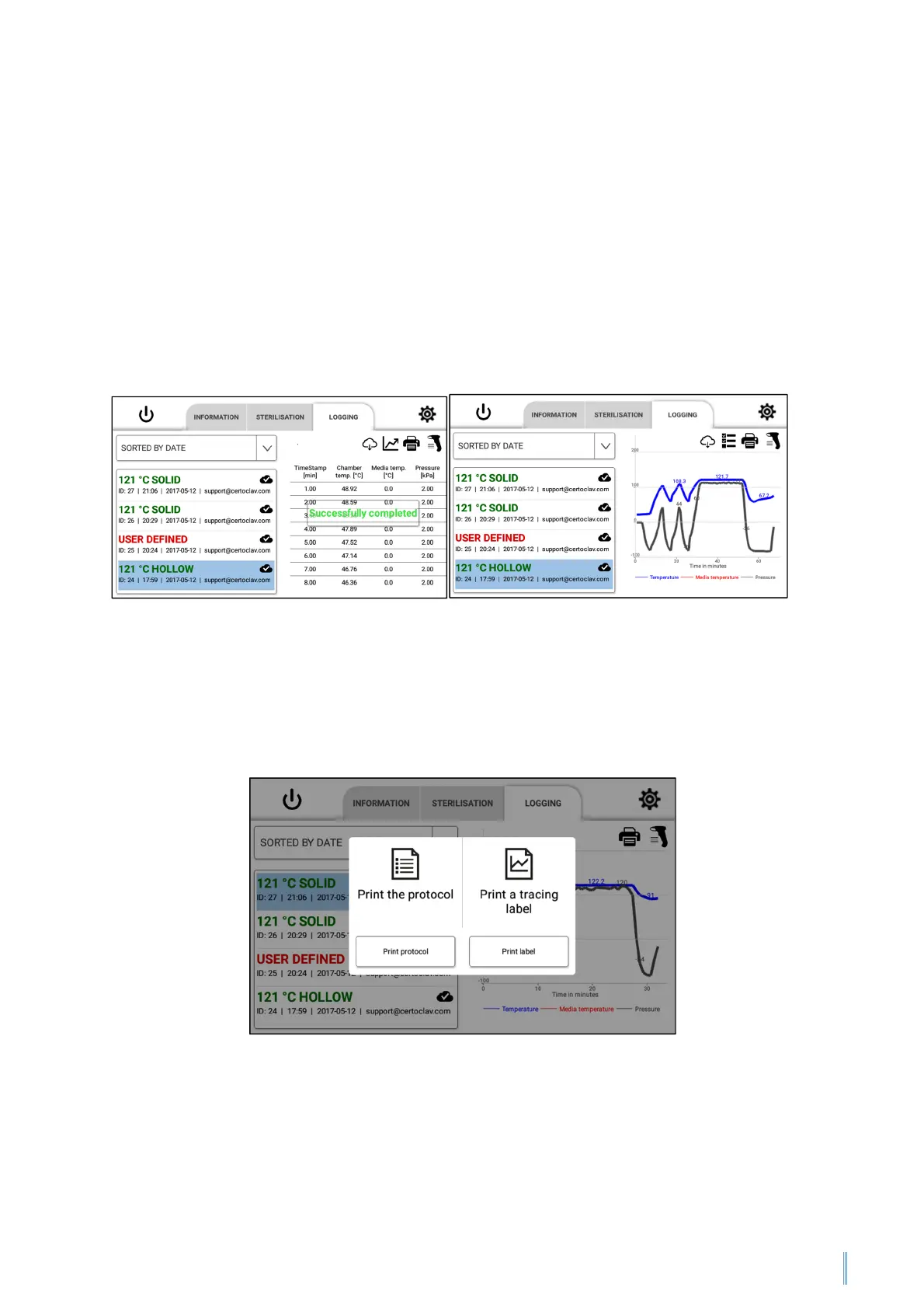 To view sterilisation protocols, navigate to the Logging tab. A list of all recorded