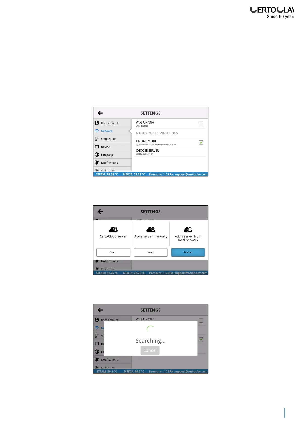 Connect the CertoServer to the LAN and switch in the server. Connect the autoclave