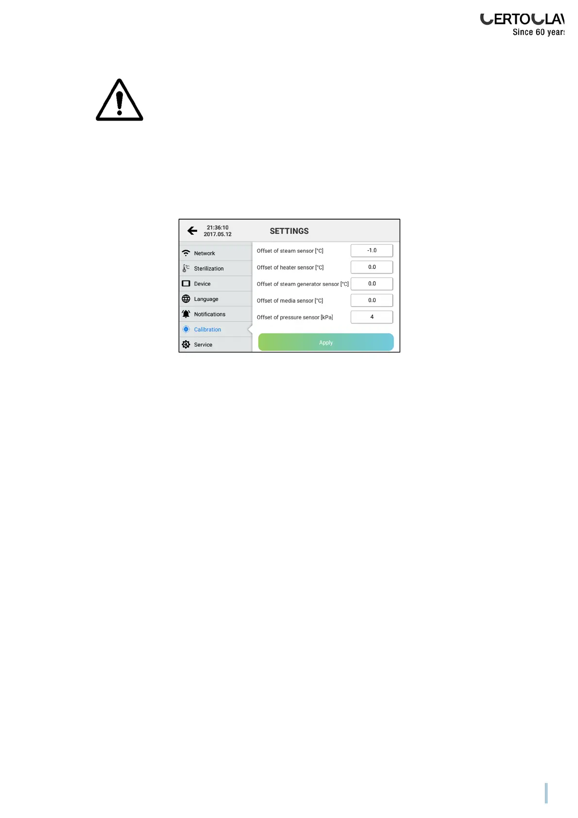 3°C; 3°C] and [-5 kPa; +5kPa]. Then press on “Apply”.