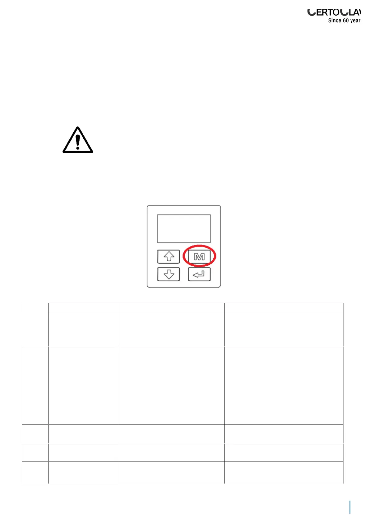 user must confirm the error message by pressing the M button for a longer period so