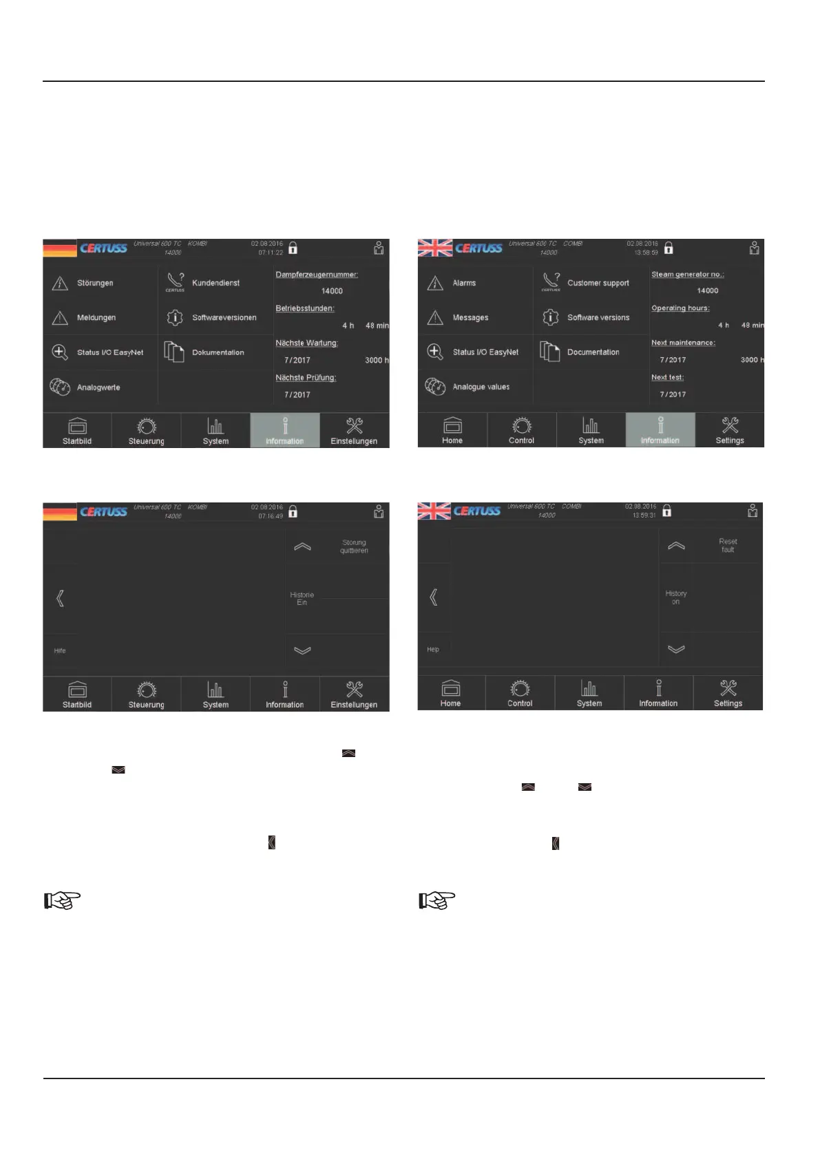 mationen über Störabschaltungen aufrufbar.