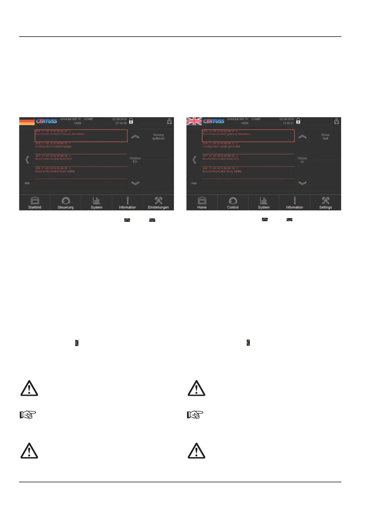 Berühren des Feldes „Störung quittieren“