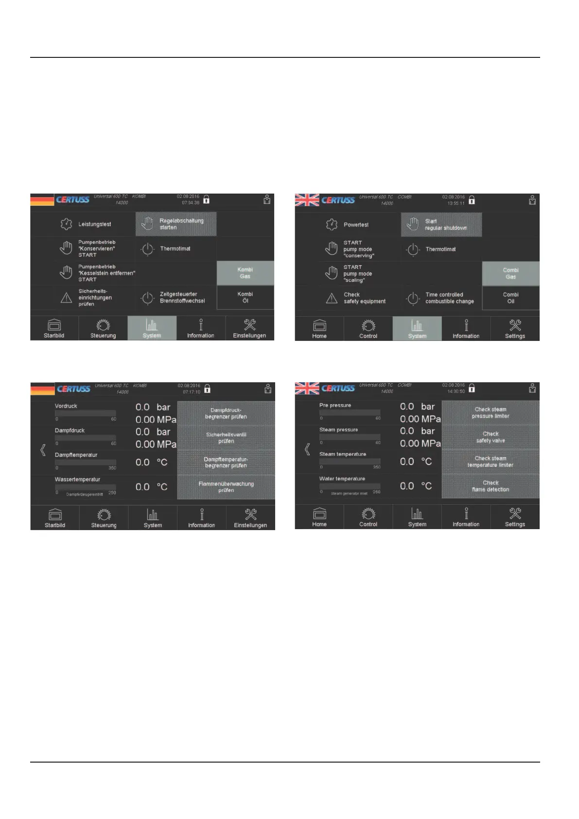 4. Touch the "Check steam temperature limiter"