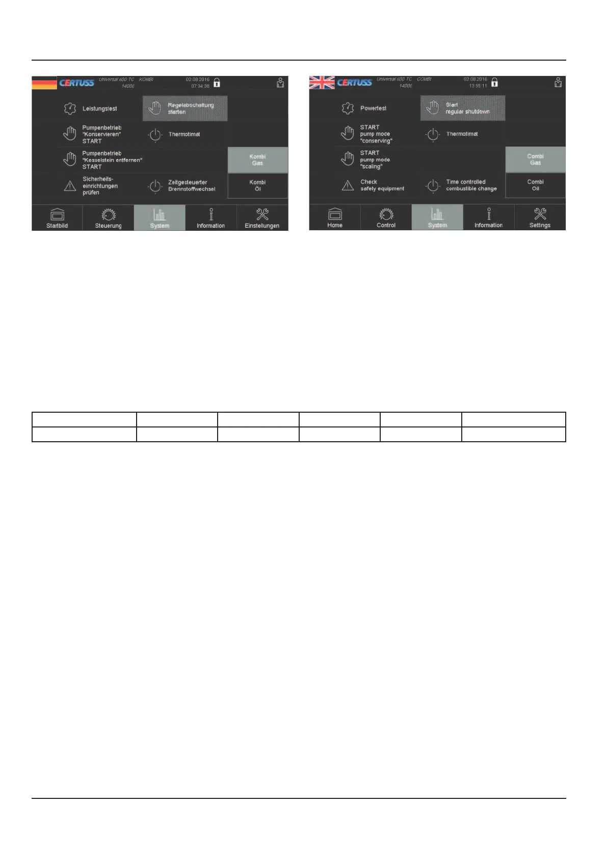 "STOP" field and switch the steam generator