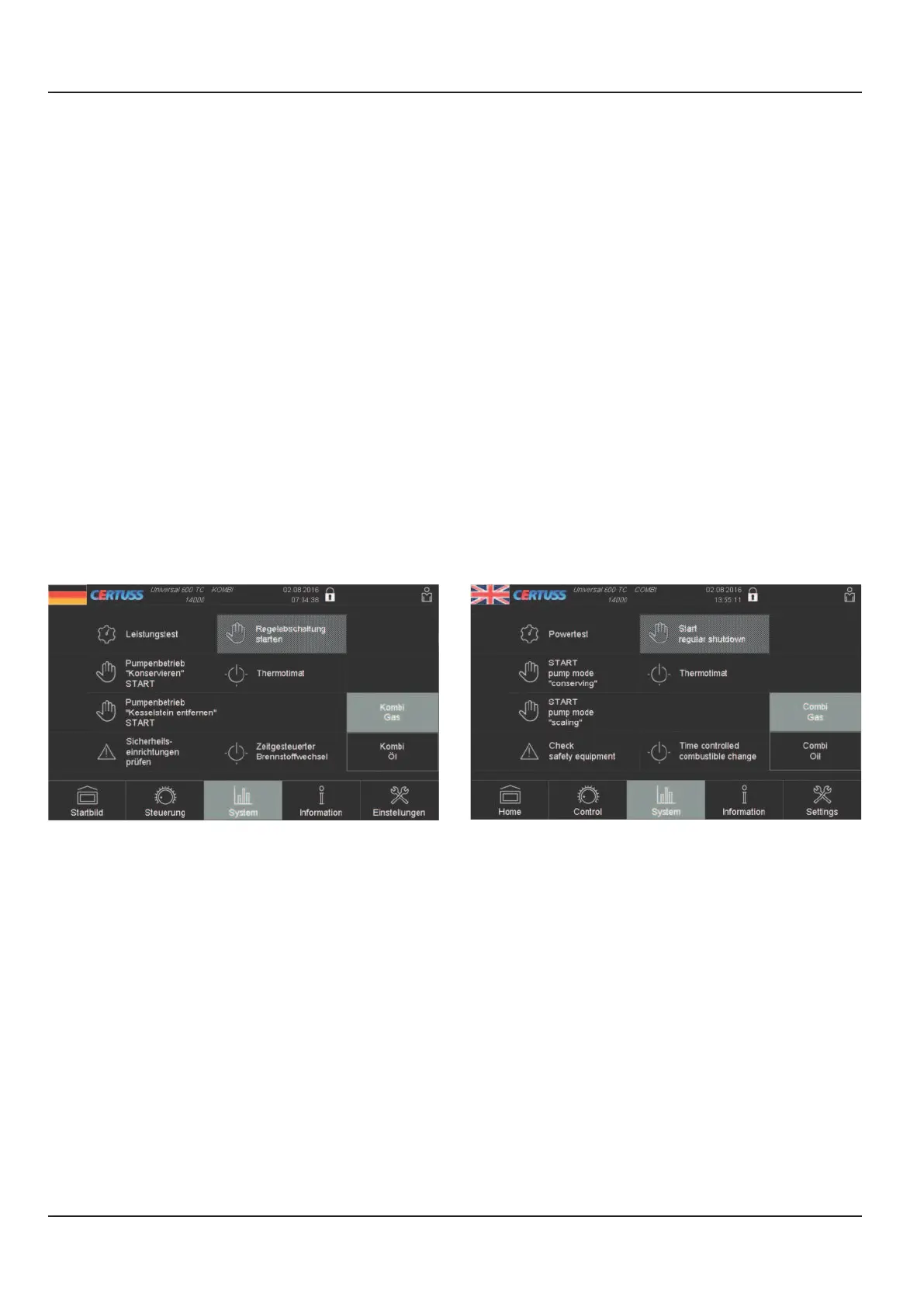 „Pumpenbetrieb Kesselstein entfernen STOP“.