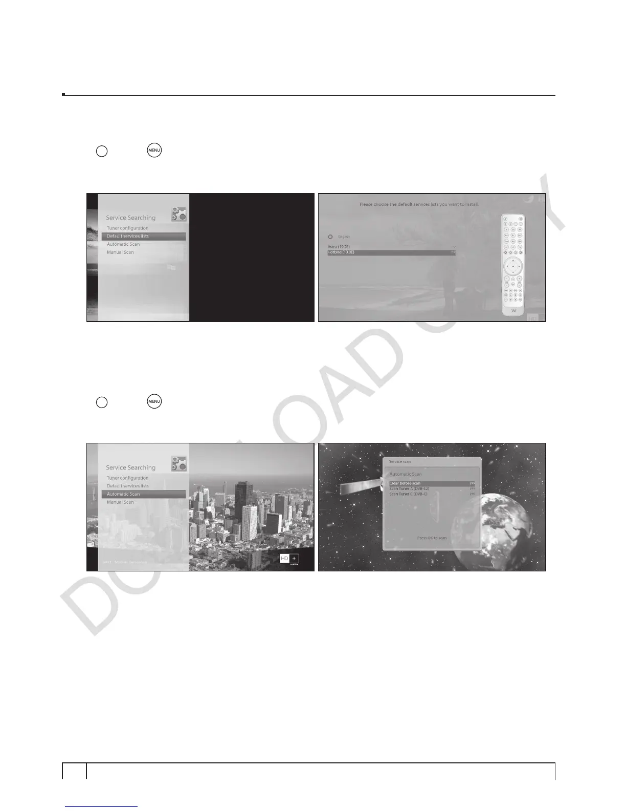 If default service lists are not available, you can run the service scan automatically or manually to add TV